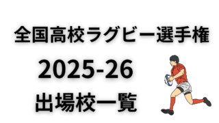 '25全国高校ラグビー 千葉県予選 全国高校ラグビー2025-26 結果速報や組合のまとめ 今回は、2025年9月14日(日)~11月2日(日)に開催される全国高校ラグビー選手権千葉県予選大会について見ていきましょう。 全国高校ラグビー選手権への出場権はどこの高校が獲得するのか大注目ですね。 今回は、そんな千葉県予選の結果中心に確... 2025.09.17 2025.10.05 '25全国高校ラグビー