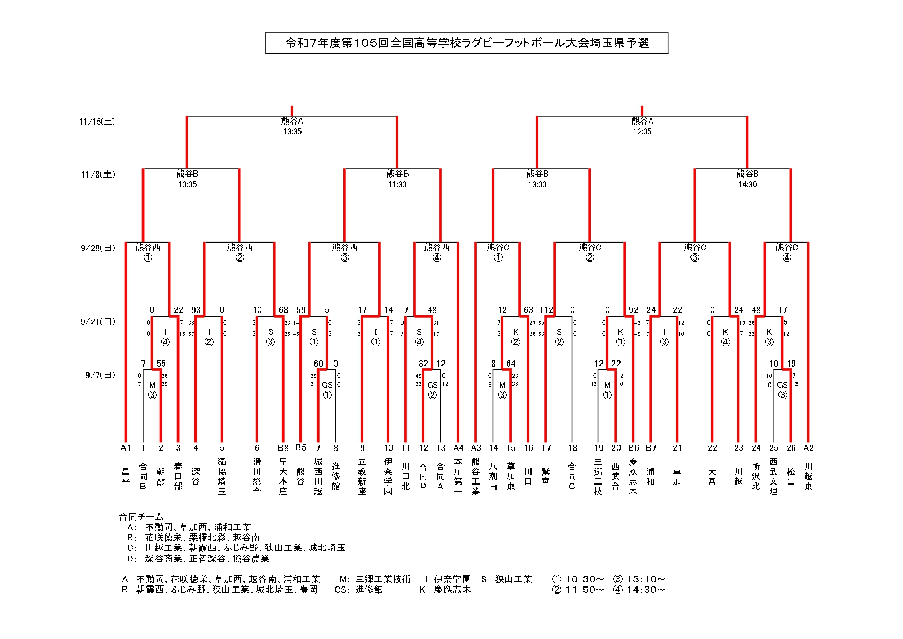 組合せ 全国高校ラグビー 埼玉県予選 2025