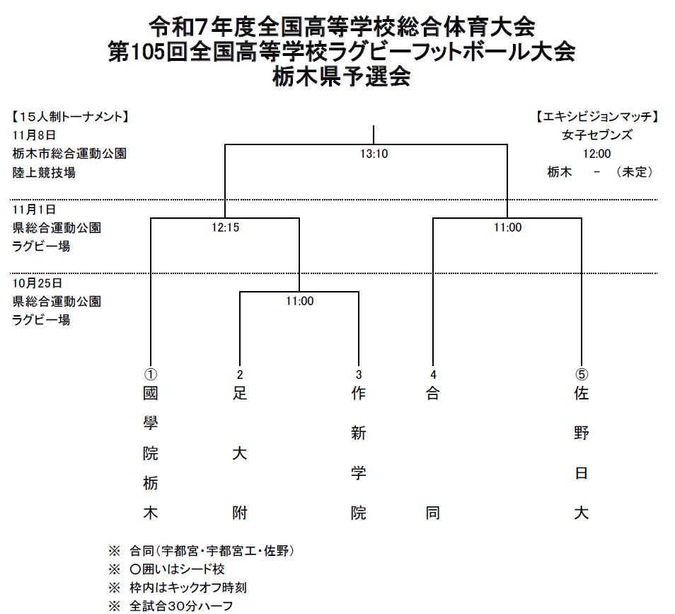 組合せ 全国高校ラグビー 栃木県予選 2025
